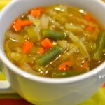 4. Retira la sopa del fuego y deja enfriar durante unos minutos. Luego, utiliza una batidora de mano para mezclar la sopa hasta que quede suave y cremosa. Si la sopa está demasiado espesa, agrega agua o caldo de vegetales hasta que alcance la consistencia deseada. Añade la leche de coco, sal y pimienta al gusto y vuelve a calentar la sopa.