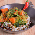 - Vierte la crema de soja en la sartén y remueve bien todos los ingredientes. Cocina a fuego medio durante unos minutos, hasta que la crema se caliente y se integre con el resto de los ingredientes. Sazona con sal y pimienta al gusto.